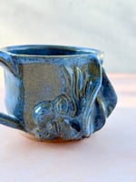 Wheel thrown stoneware tumblers with hand sculpted elements. Glazed in a matte grayish blue with spots of green and black. (Set of two. One boobs and one bum.)